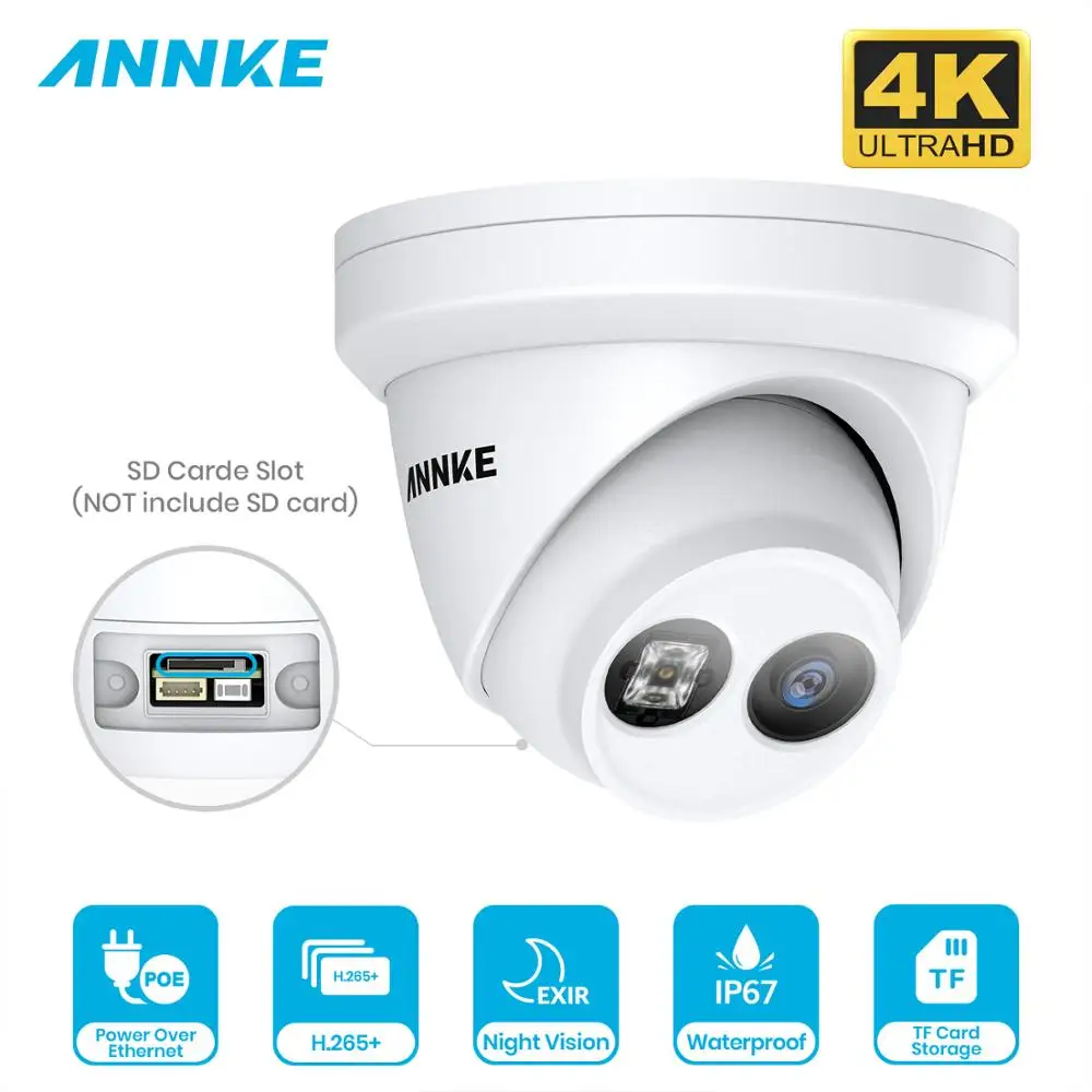 Hot Sale ANNKE 1PC Ultra HD 8MP POE Camera 4K Outdoor Indoor Weatherproof Security Network Dome EXIR Night V