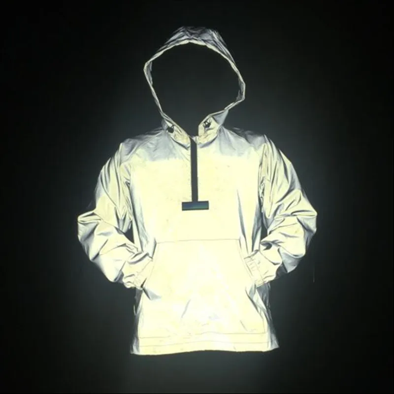 HOT Sale Men Night Highlight reflective Loose Windbreaker Hooded Jacket fashion Streetwear Harajuku Dancer W