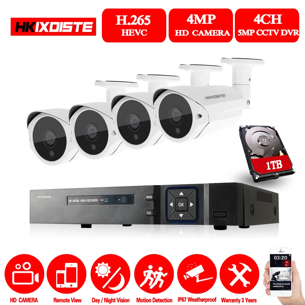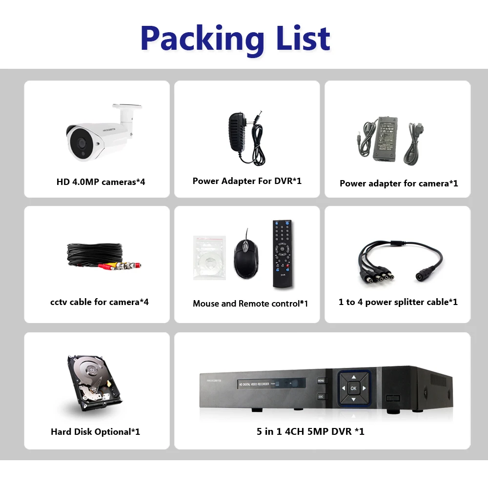 4CH adh Security Camera System H.265 CCTV HD DVR Kit 5MP IR Outdoor Night Vision Camera Home Video